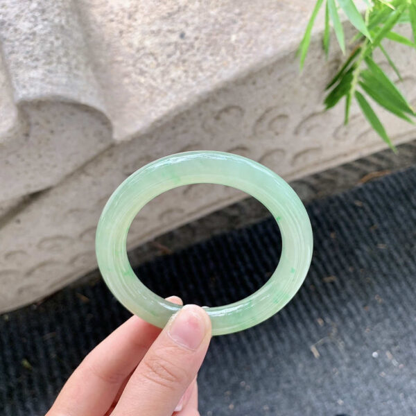Excellent translucency combined with a silky, tactile feel ensures both visual appeal and comfort when worn. Under light, natural fibrous inclusions are visible, highlighting the bangle’s authenticity and natural formation without compromising its beauty or durability.